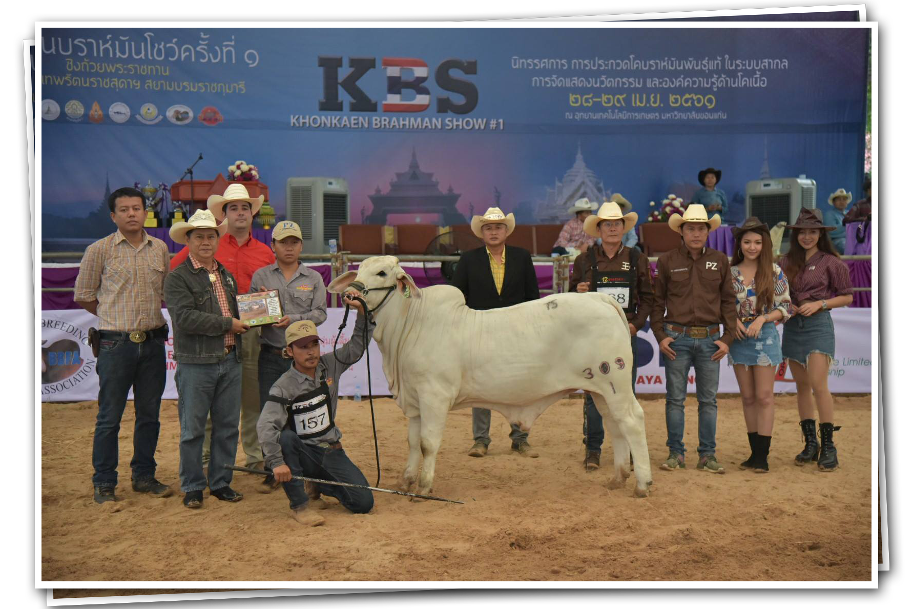 ผลงาน : งานประกวดวัวขอนแก่นบรามันห์โชว์ ครั้งที่ 1 พ่อพันธุ์เราได้รับรางวัล GRAND CHAMPION/CALF CHAMPION BRAHMAN GRAY BULL