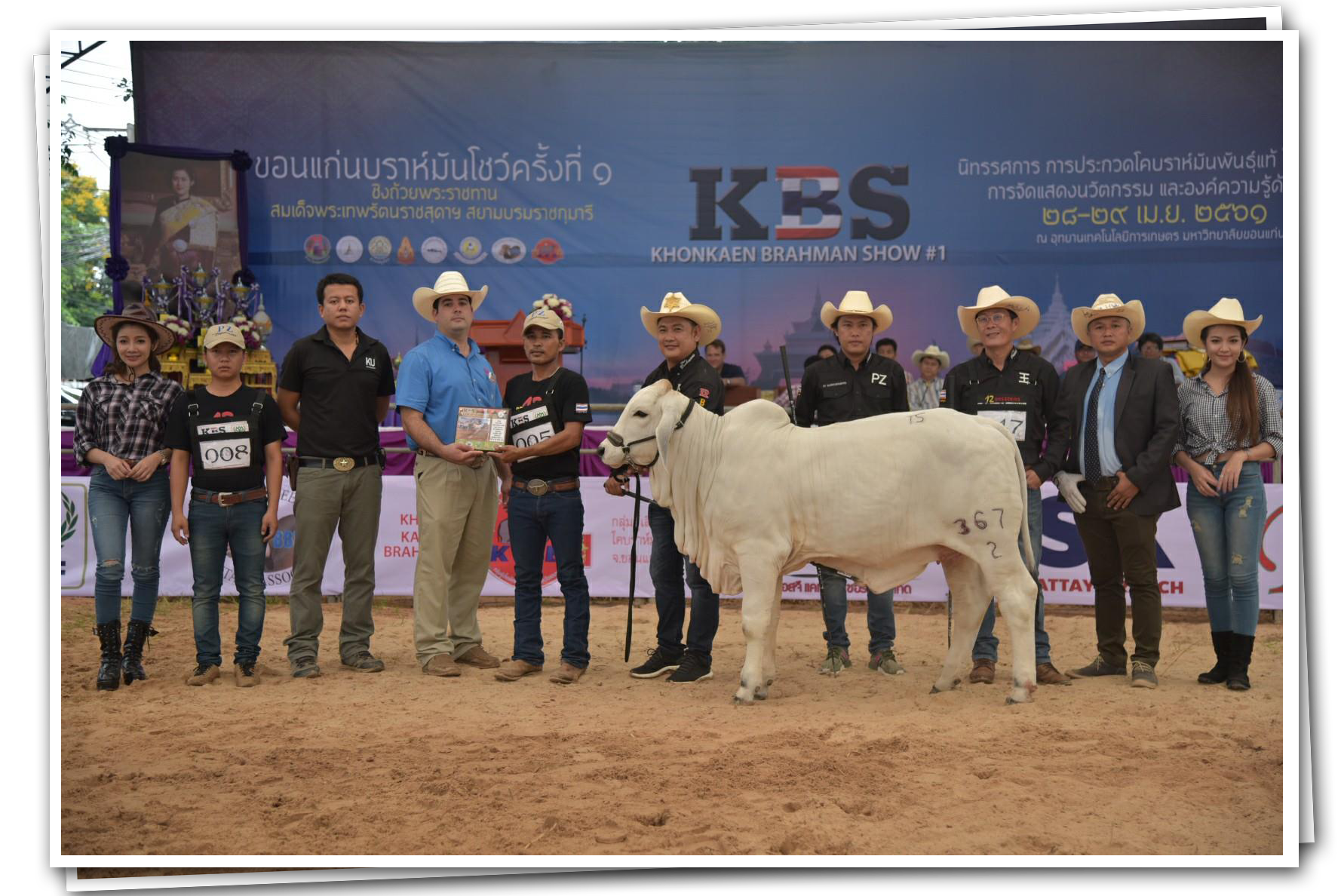 ผลงาน : งานประกวดวัวขอนแก่นบรามันห์โชว์ ครั้งที่ 1 แม่พันธุ์เราได้รับรางวัล RES.CALF CHAMPION GRAY FEMALE